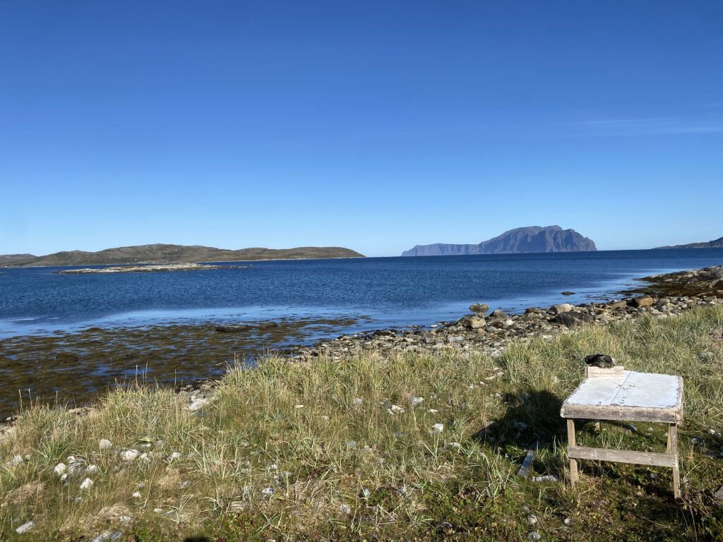 Outer part of the island Vannøya outside Tromsø with a view to the North, the lighthouse Fugløykalven at 70N in the horizon between the islands up right. Zoom F3 and EM-272 in SASS 45 degrees mounted in driftwood table, dead wombat streched over the SASS for wind-protection.